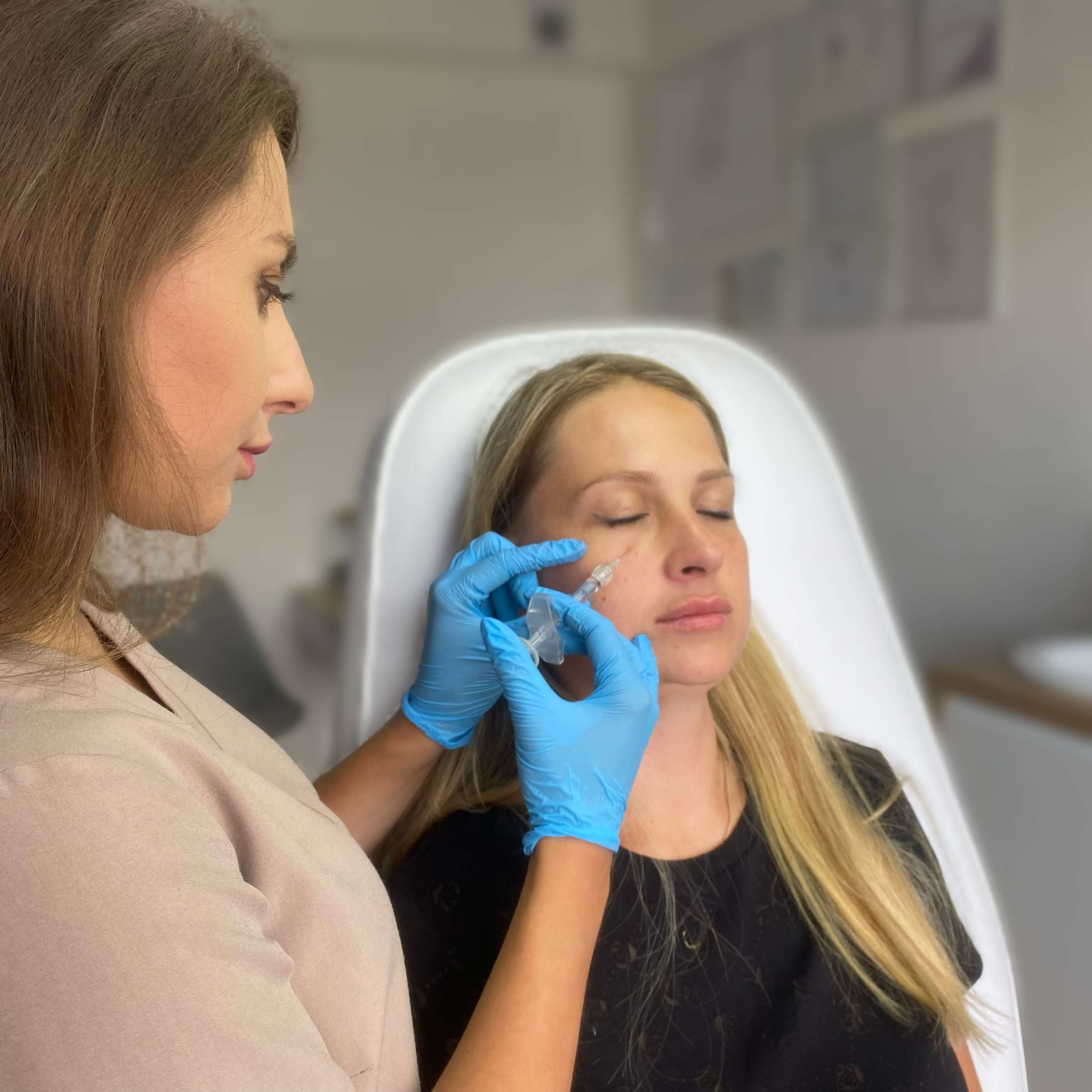 Zabieg rozpoczyna się oczyszczeniem skóry twarzy oraz zastosowaniem kremu znieczulającego na obszar, który będzie poddawany zabiegowi. Następnie podaje się preparat usieciowanego kwasu hialuronowego przy użyciu igły lub kaniuli. Pierwsze efekty widoczne są bezpośrednio po zabiegu, natomiast na ostateczne należy poczekać około dwóch tygodni. Po zabiegu mogą pojawić się siniaczki i niewielka opuchlizna. Efekty utrzymują się ok 12 miesięcy.